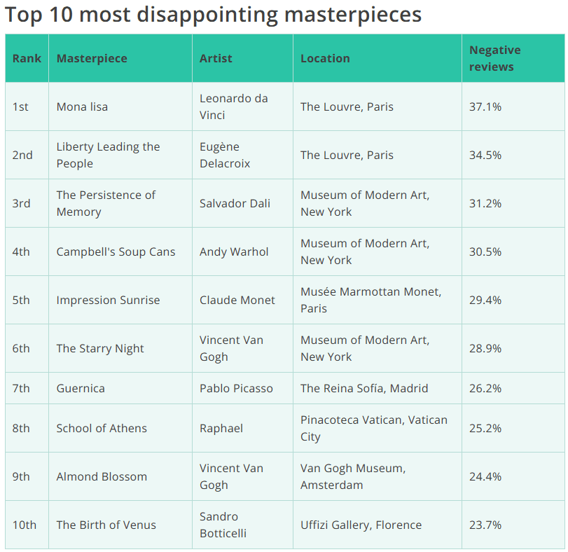 A quick example of this tactic in action is a piece where we conducted a semantic word analysis using over 18,000 reviews to uncover the world’s most disappointing artistic masterpieces. As you can tell from the image above, the Mona Lisa came out top and giving us a great hook to send to journalists.