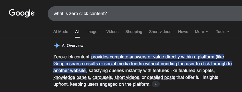 Google is moving towards more zero-click content, with several types that extend beyond AI Overview.